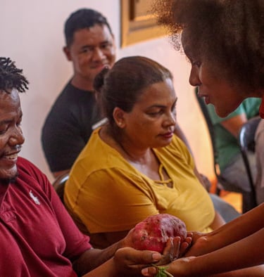 O espetáculo performativo Da Terra a Terra apresenta conhecimentos intergeracionais acerca das plantas que compõem os quintais mineiros, a partir da confluência estabelecida entre os diferentes povos que ocuparam e ainda ocupam Minas Gerais.