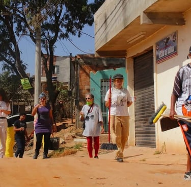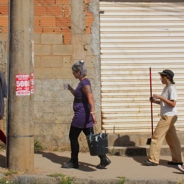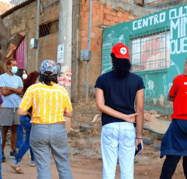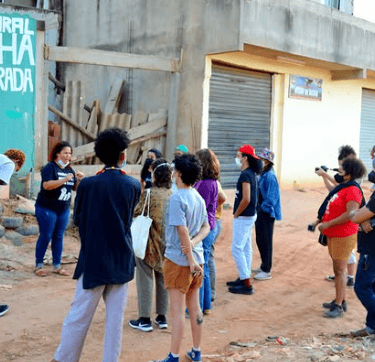 Na sequência, foi realizada uma caminhada com a liderança comunitária Poliana pelas ruas da Ocupação Eliana Silva, proporcionando um contato direto com a história da ocupação e seus desafios atuais.