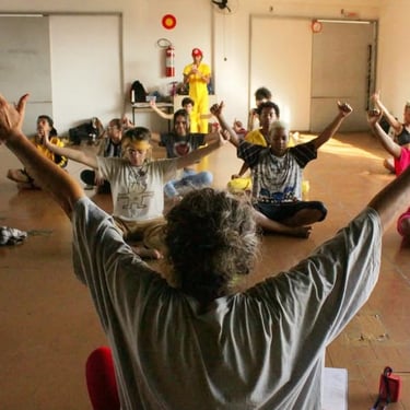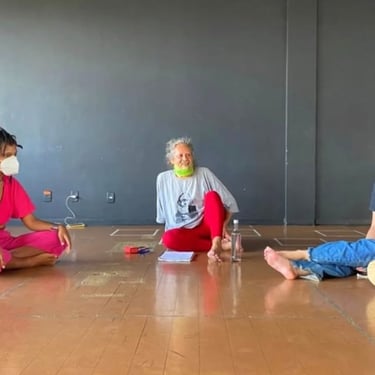 Para encerrar a residência, aconteceu o último encontro no Centro Cultural Vila Santa Rita com Ed Marte, que propôs a atividade “O que fazer aqui?”. A partir da ativação dos dez corpos, Ed conduziu uma prática de kundalini yoga, promovendo alongamento, relaxamento e escuta sensível do próprio corpo como instrumento de criação e transformação.
